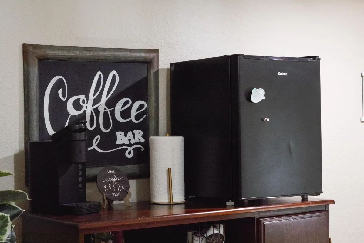 Drip + Keurig coffee makers, blender, toaster, wine glasses