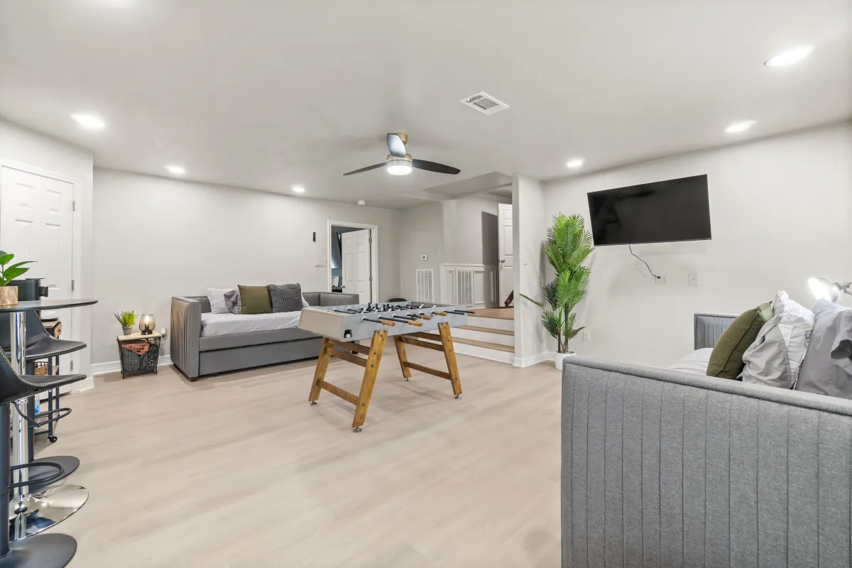 Whether you're enjoying a midday swim, grilling with friends, or lounging by the fire pit beneath glowing string lights, the backyard is designed for pure leisure and celebration.